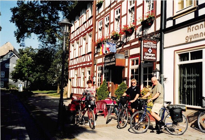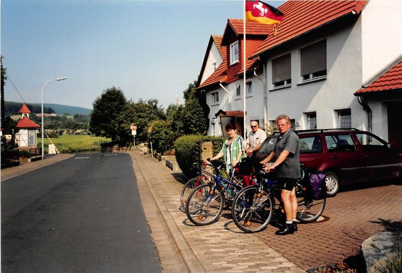 ...Pfeiffers bei der Autovermietung verabschiedet... wir weiter in Richtung Osten...ausgesuchte Radwege waren (noch) sehr schlecht, deswegen auf wenig befahrene Landstraßen ausgewichen...in Sangerhausen übernachtet...Erkenntnis: erwachsene Einheimische können kaum herzhaft lachen..."Schlagloch-Etappe" der "Tour de Ost"...